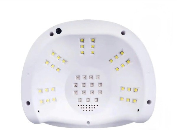 Doble fuente de luz led. 45 piezas led colocados de manera estratégica para lograr un secado parejo, Adaptador de entrada nominal 240 V. Dimensiones 210x100x235mm